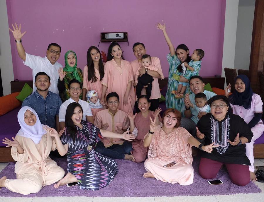 Dari Badung, Bali, Anang dan Ashanty bersama keluarga besarnya menyampaikan ucapan selamat Idul Fitri. Dan seperti foto-foto keluarga mereka sebelumnya, selalu ada dress code yang ditunjukkan. Kali ini, pink menjadi warna kemenangan.
