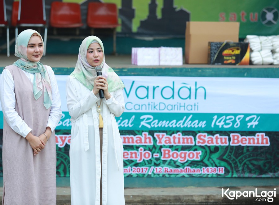 Ditemui saat berkunjung ke Yayasan Satu Benih, Bogor, Jawa Barat, Rabu (7/6), akris cantik Natasha Rizki yang merupakan ambassador Wardah mengikuti acara buka bersama anak yatim.