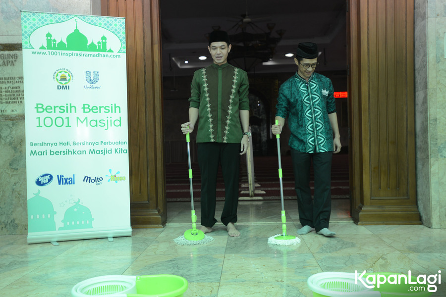 Dalam waktu dekat, umat muslim akan menyambut kehadiran bulan ramadhan. Aktor tampan Dude Harlino pun sambut hadirnya bulan suci ini dengan ikut terlibat dalam aksi gerakan Bersih-Bersih 1001 Masjid. Dude pun sempat terlihat berkunjung ke Masjid Agung Sunda Kelapa yang terletak di Menteng, Jakarta Pusat.