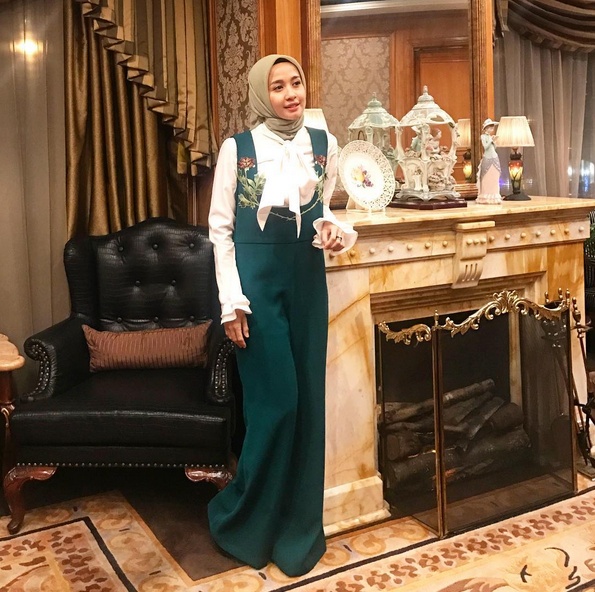 Pemain film SURGA YANG TAK DIRINDUKAN ini memang dikenal dengan gayanya yang kece. Sebuah celana overall unik ia padukan dengan blouse lengan panjang. Kece banget ya.
