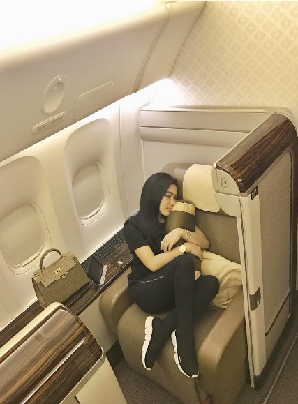 Syahrini menuju Jepang dengan menumpang pesawat kelas utama seperti biasanya.