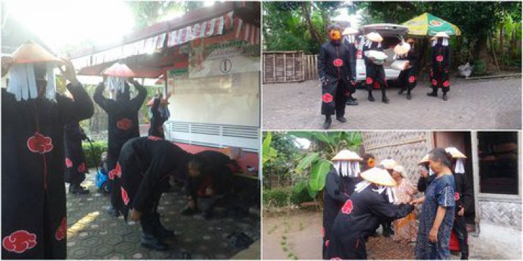 Kemunculan para pemuda berjubah hitam motif awan merah ini cukup mengejutkan warga Desa Bayeman, Lumajang, Jawa Timur. Namun ternyata orang-orang di balik kostum tersebut tidak berniat jahat maupun menangkap siluman rubah ekor sembilan tapi membagikan zakat. Mulia sekali bukan?