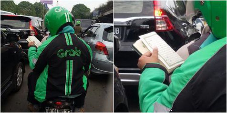 Salah seorang umat Muslim yang memanfaatkan waktu untuk mendapatkan pahala di bulan Ramadan ini adalah seorang Ibu Ojek online. Melalui akun instagram @dramaojol.id, foto Ibu ini menjadi viral. Sebab di tengah hiruk pikuk kemacetan dan semangat bekerja, dirinya menyempatkan diri membaca Al Qur'an!